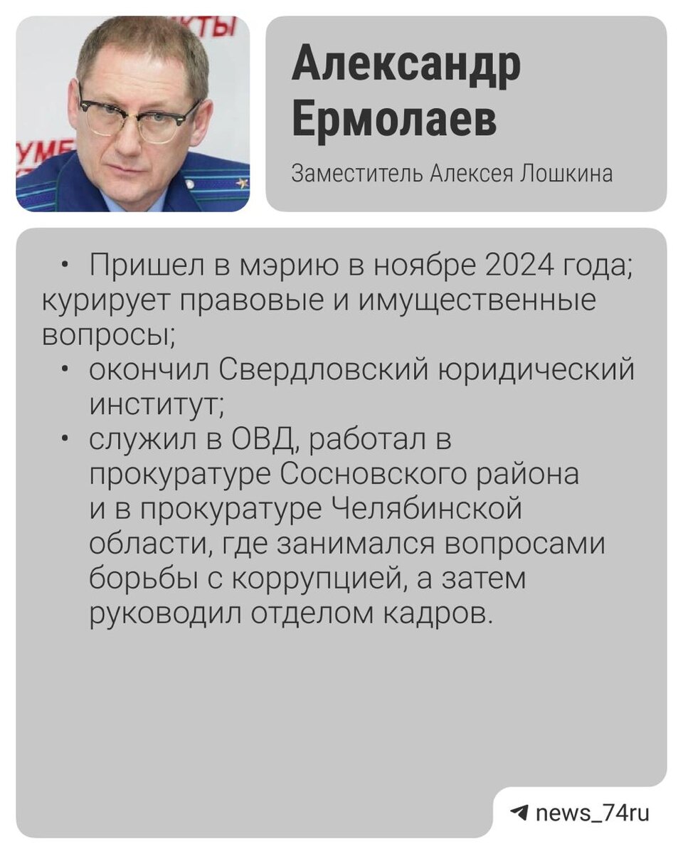 Бывших не бывает? Сколько в новой мэрии Челябинска экс-силовиков и аудиторов На этой неделе депутаты определили новых почетных граждан Челябинска. Впервые звание единогласно присвоили ветерану МВД Валерию Маскаеву и ветерану КГБ Александру Макееву. Решение, может, вопросов и не вызывает, но любопытно, что принято оно в тот момент, когда мэром города стал бывший силовик. Алексей Лошкин служил в МВД, где расследовал экономические преступления, затем возглавлял Главное контрольное управление и Контрольно-счетную палату региона. Нам стало интересно, сколько же сейчас в подразделениях администрации города бывших сотрудников силовых, надзорных и контролирующих органов. Мы насчитали девять человек (возможно, знаем не всех) ⬆️