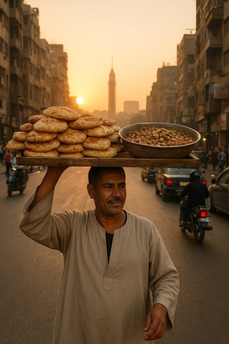 Повседневная жизнь Каира 🌅 Рассвет над Нилом Каир просыпается рано. С первыми лучами солнца набережные Нила начинают оживать: рыбаки спешат к лодкам, мосты постепенно заполняются машинами, а торговцы с тележками раскладывают свои товары. На рассвете город ещё кажется спокойным, но это лишь иллюзия: в течение часа шум охватит каждую улочку. 🚖 Транспортный хаос Движение в Каире похоже на отдельную форму искусства. Сигналы клаксонов звучат как оркестр, где каждый музыкант играет сам по себе. Здесь не всегда работают привычные правила дорожного движения — вместо этого царит своя «договорённость»: чуть подался вперёд, мигнул фарами, показал жест рукой — и вот уже дорога освобождена. Для иностранца это кажется хаосом, для египтянина — ежедневная рутина. ☕ Завтраки и уличная еда Настоящее утро египтянина невозможно представить без фуль медамес — тушёных бобов, заправленных оливковым маслом, тмином и лимонным соком. К нему обязательно подают тёплый хлеб балади, похожий на пышную питу. На у