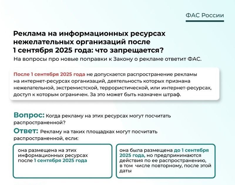 Добрый солнечный субботний день, друзья! ☀️ В предверии 01 сентября (читай "вступления в силу запрета рекламы на запрещённых площадках") делюсь с вами разъяснениями ФАС, которые служба опубликовала в виде доступных слайдов! При наличии вопросов - пишите 👉 @Vera29100 будем разбираться Всем хороших выходных! ❤️