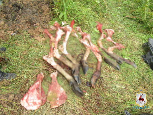 Браконьер уже освежевал туши животных и готовился утилизировать останки когда его задержали. С места преступления полицейские изъяли 220 кг мяса и карабин.