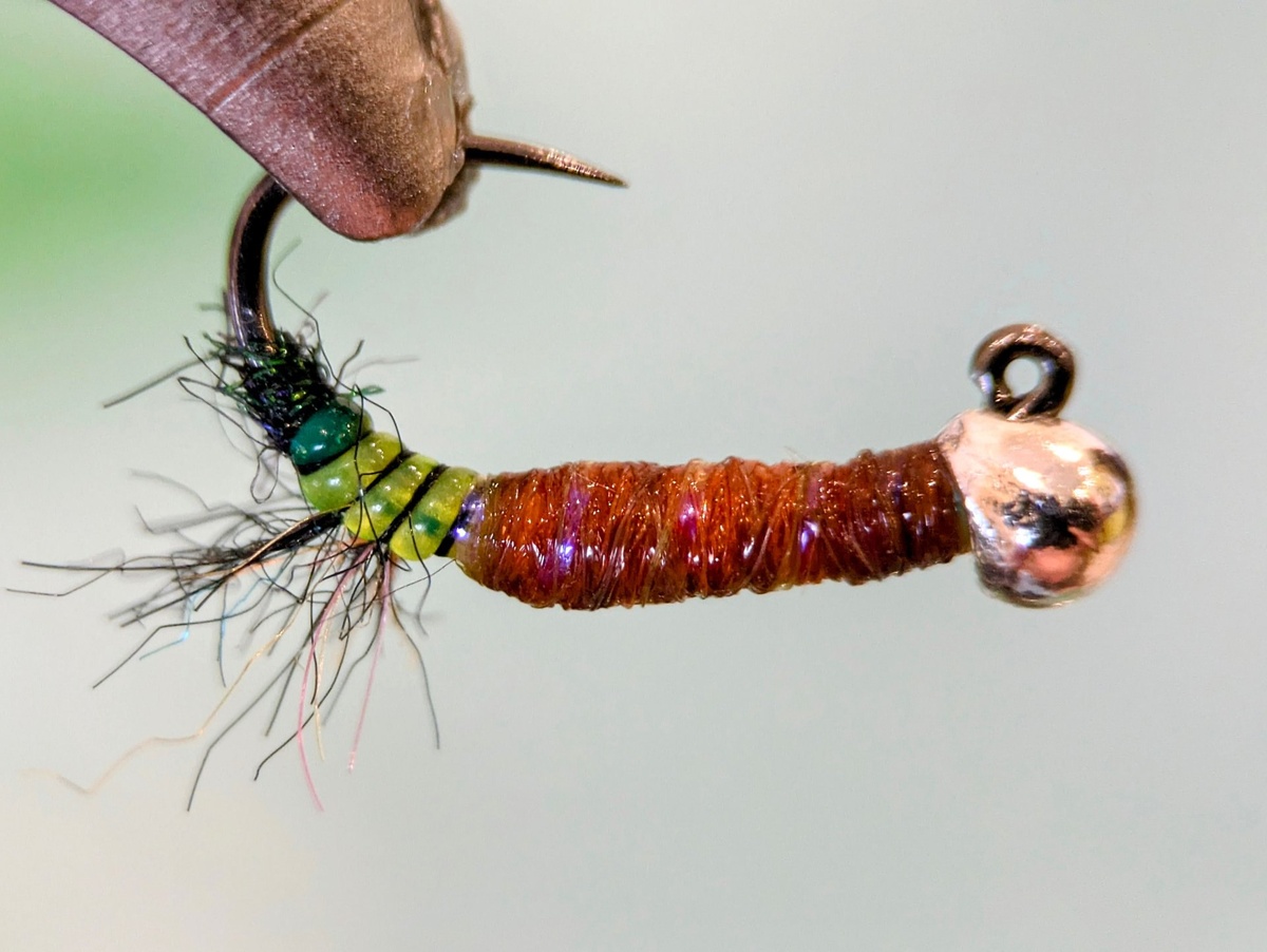 Вторая удачная мушка из новеньких, которая отлично отработала по хариусу на Волге, это имитация мелкого ручейника в домике из травинок