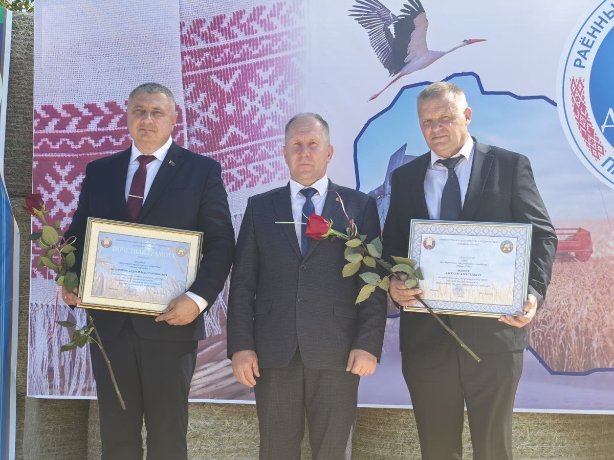 Начальник главного управления растениеводства Министра сельского хозяйства и продовольствия Республики Беларусь Николай Лешик вручил заслуженные награды для ОАО "Новая Припять" и ФХ "Опыт КАА"