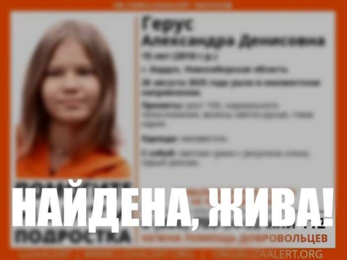 Глухонемую девушку-подростка из Бердска нашли живой Благополучно завершились поиски 15-летней Александры Г. из Бердска, города-спутника Новосибирска. Сотрудники отряда «Лиза Алерт» поблагодарили всех волонтеров, участвовавших в поисках подростка. https://academ.info/news/incidents/48171/