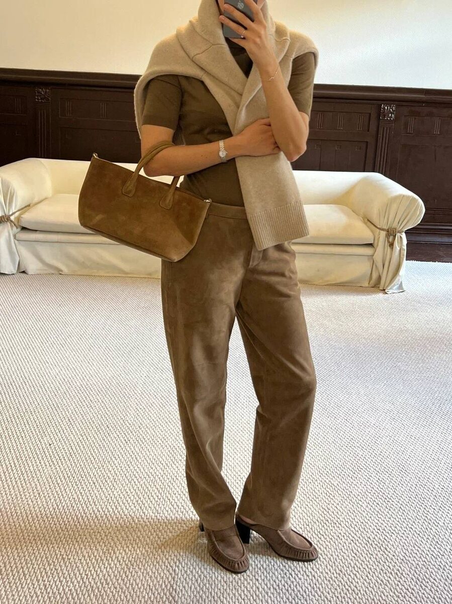 Лаконичная альтернатива джинсам на осень — брюки из капсулы GI Из замши с мягким ворсом — плотной, но бархатистой. Кремовый оттенок добавит цвета в гардероб, а эластичная подкладка сделает каждое движение легким во время прогулки по осеннему парку или встреч с близкими Из мягкой кожи — гладкой и эластичной. Она естественно повторяет силуэт, не сковывая движения. Подойдут для деловой встречи или дней, когда важно быть уверенной Эти и другие изделия ищите на сайте, в приложении и магазинах 12 STOREEZ