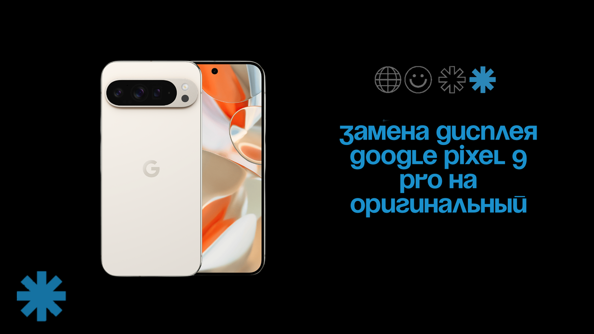 Экран Google Pixel 9 Pro - это современная OLED-панель с высоким разрешением и яркостью, обеспечивающая точную цветопередачу и плавность интерфейса. Но даже такой дисплей может выйти из строя после падения, удара или попадания влаги. Если у вас разбился экран Pixel 9 Pro, появились полосы, пятна, сенсор не работает или дисплей полностью погас - необходима замена. В GadgetFix мы выполняем замену дисплея Google Pixel 9 Pro только на оригинальные экраны, идентичные заводским. После установки дисплей проходит активацию и обязательную калибровку сканера отпечатка пальца через авторизованное ПО Google, чтобы сканер работал корректно и так же быстро, как на новом устройстве. На все работы и детали мы даем гарантию 1 год. Симптомы неисправного экрана Pixel 9 Pro Если заметили один из этих признаков - ремонт экрана Google Pixel 9 Pro лучше не откладывать. Как проходит замена дисплея Google Pixel 9 Pro в GadgetFix Гарантия и безопасность Мы даём 1 год гарантии на дисплей Pixel 9 Pro