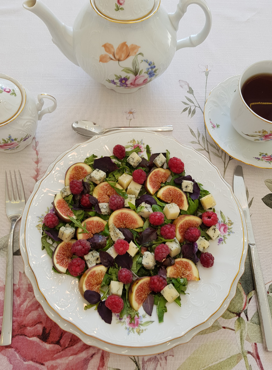 Добрый день, дорогие друзья! Сегодня я предлагаю вам оригинальный рецепт летнего салата, в котором сладкие нотки инжира перекликаются с ореховыми нотами горгонзолы, малина добавляет легкую кислинку, базилик придает свежесть, а руккола пряно-острый вкус.