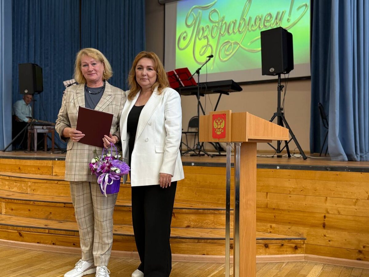 Поздравительный адрес от директора, музыка, вручение цветов и фото на память — этот момент стал особенным для коллег и гостей.