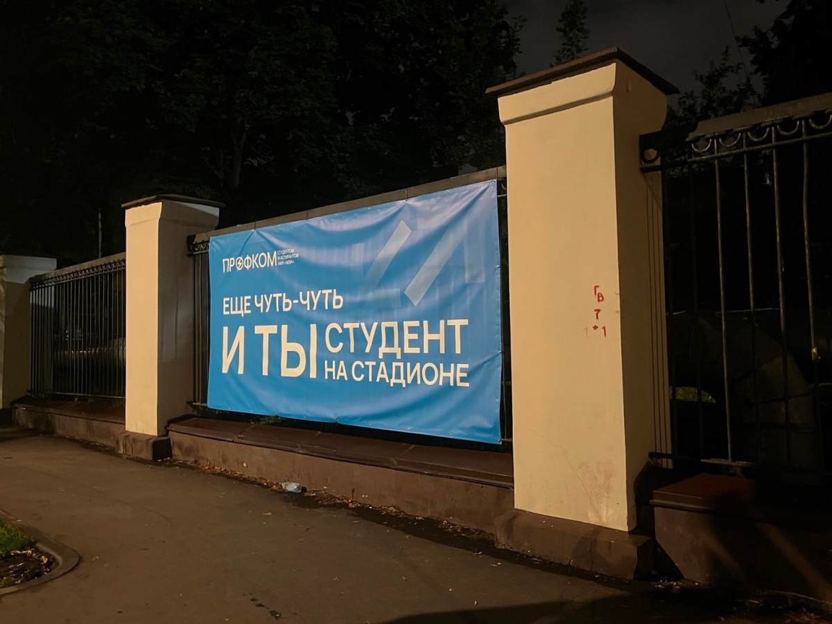 Ещё чуть-чуть и ты студент на стадионе... Плакат от профкома студентов и аспирантов НИУ "МЭИ" на заборе стадиона "Энергия" со стороны 2-го Краснокурсантского проезда. Источник: архив lefortovo_today