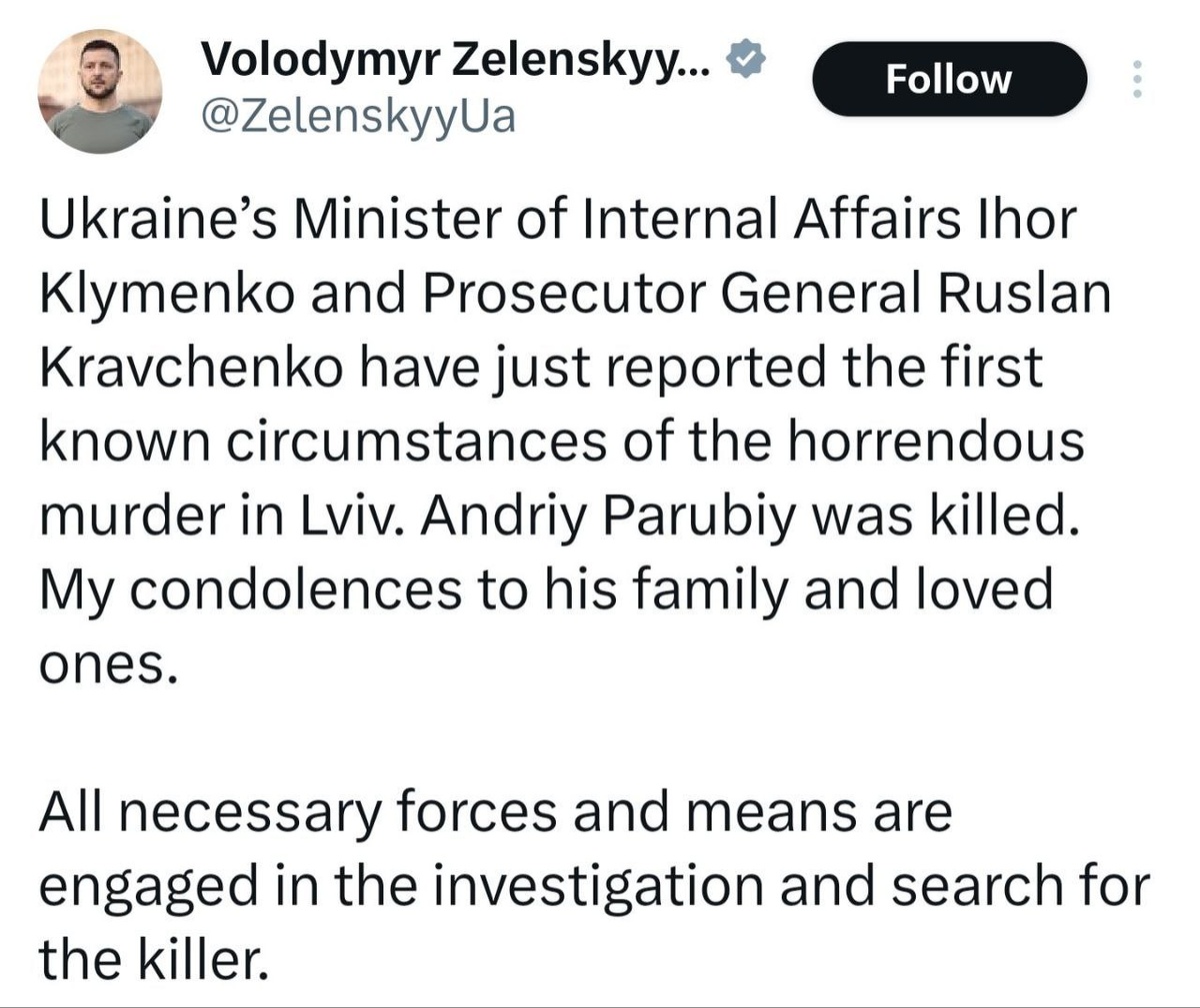Zelensky offers CONDOLENCES to family of Parubiy who is confirmed KILLED