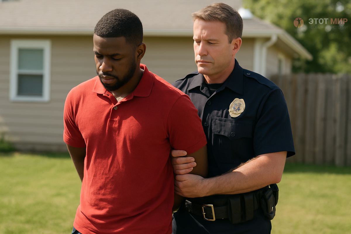 История о том, как чернокожего юношу в красной рубашке заподозрили в ограблении лишь за то, что он зашёл во двор за мячом. Мужчину в красной рубашке, чернокожего юношу, заподозрили в том, что он намеренно проник во двор небольшого дома, чтобы совершить ограбление. Он пытался объяснить, что всего лишь хотел забрать мяч, случайно залетевший через забор, но хозяин не поверил ни единому слову. Разъярённый владелец сразу вызвал полицию, настаивая, что поведение незнакомца подозрительно и требует немедленного вмешательства. К моменту приезда офицера спор между ними уже разгорелся до опасной черты: крики, гневные жесты — ещё немного, и всё вышло бы из-под контроля. Полицейский попытался успокоить обоих, попросил разойтись и говорить тише. Но спустя несколько минут он принял решение — надел наручники на молодого человека и готовился увезти его в участок. Тот лишь опустил голову. Его глаза потемнели от усталости, словно он привык к тому, что его подозревают и судят по цвету кожи. В глубине души