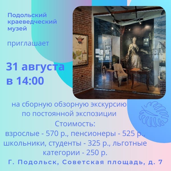 ✨ Сборная обзорная экскурсия по постоянной экспозиции Приглашаем 💗 🚫 Возраст: 6+ 📆 31.08.2025 🕒 14:00 🏢 Подольский краеведческий музей 📍 г. Подольск, Советская площадь, д.7 #webПодольск ⭐Поддержать канал голосом 💰 Вакансия - курьер в Подольске ✅ Мероприятия Подольск https://dzen.ru/id/66ed500f7b5671493eca3fd6 http://vk.com/podolsk_events http://dzen.ru/podolsk_events