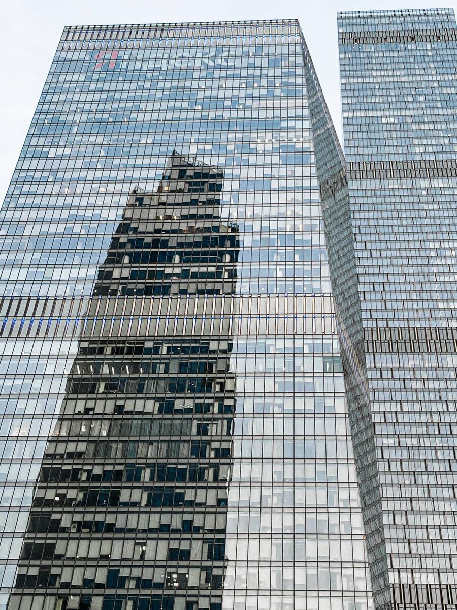 Обратили внимание на то, как в деловом центре «Москва-Сити», в зависимости от положения смотрящего интересно могут перекликаться фасады