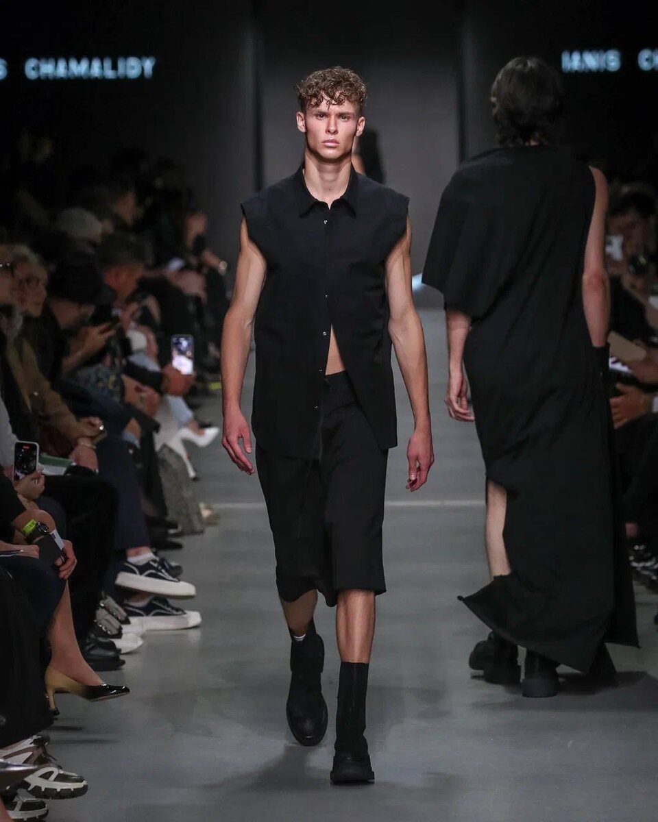 Коллекция бренда IANIS CHAMALIDY (Санкт-Петербург) на подиуме Московской недели моды Бренд IANIS CHAMALIDY представил коллекцию «Lumen In Tenebris» («Свет во тьме»), построенную на сложных многослойных образах и элементах деконструкции. В основе линейки — изделия со свободным кроем: удлиненные брюки, укороченные жакеты и асимметричные топы. Легкие силуэты были выполнены из переливающихся тканей и материалов с металлическим блеском. Коллекция выдержана в сдержанной гамме: в черных, графитовых и бежевых оттенков.