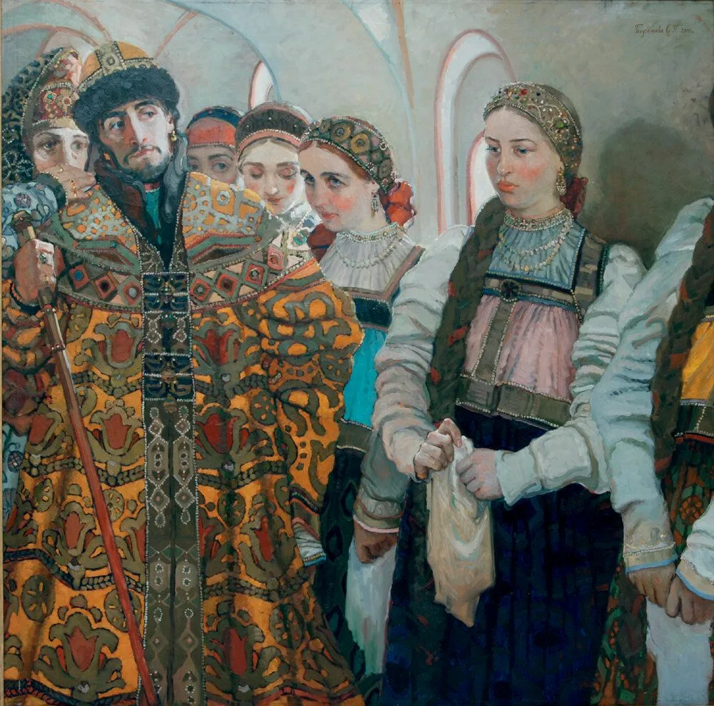 Так что велели русским боярам вести в Москву своих дочерей. Пусть царь лично выберет. Молодой, ему потомство нужно крепкое! Поэтому худеньких девушек отсеивали сразу.