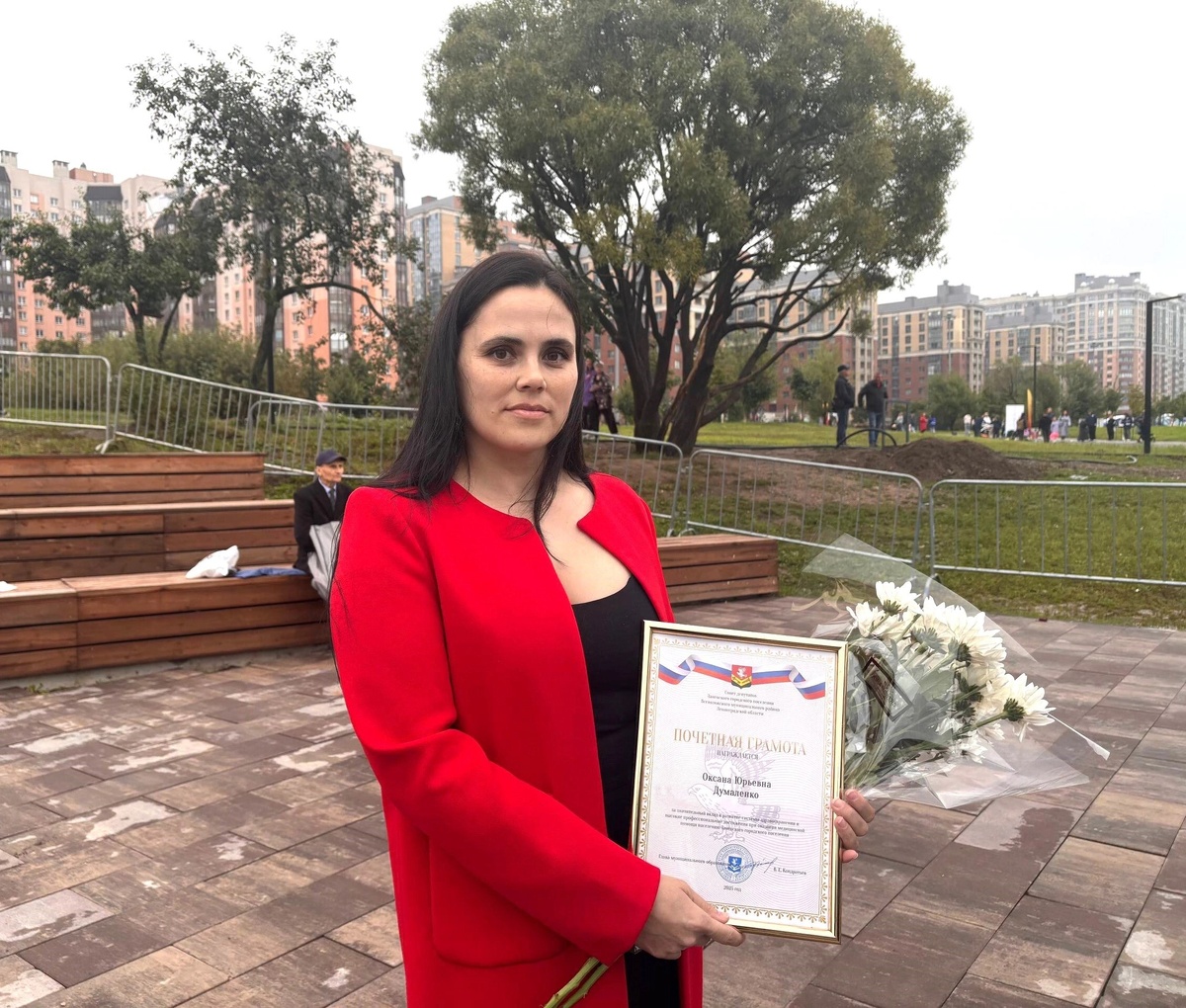 В Кудрово руководитель Заневского поселения Вячеслав Кондратьев наградил почётной грамотой совета депутатов Оксану Думаленко, процедурную сестру педиатрического отделения кудровской поликлиники, за значительный вклад в развитие системы здравоохранения и высокие профессиональные достижения при оказании медицинской помощи населению Заневского городского поселения.
