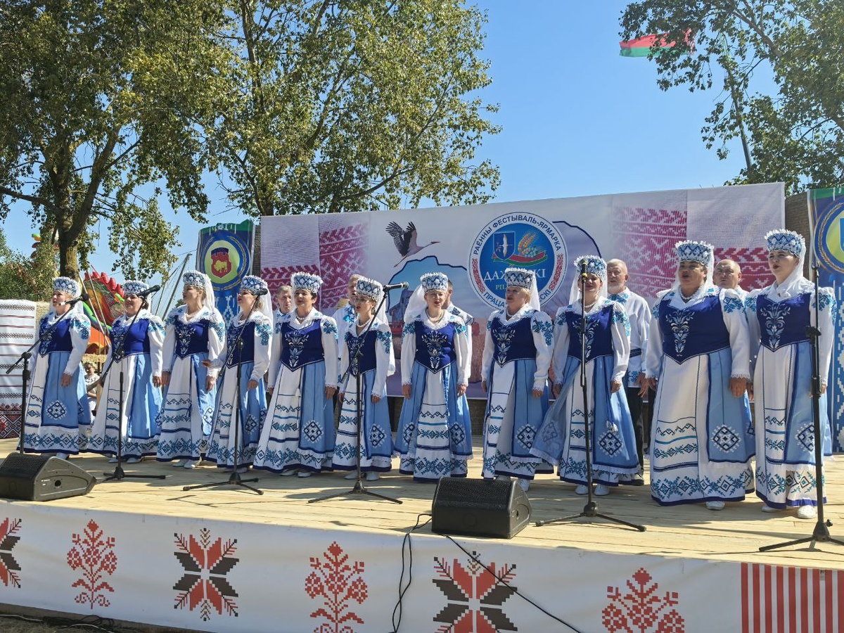 Моменты концертной программы во время торжественной части районного праздника Дожинки