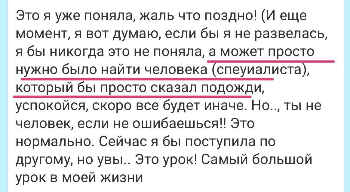 Психолог VS Развод. Как часто клиент вместо поддержки может услышать: «А что вы сами сделали для того, чтобы брак распался? Давайте разберём ваши ошибки». И сессии превращаются в поиск вины. Развод — один из самых тяжёлых кризисов, и клиент в этот момент доверяет специалисту буквально «жизнь в руки». Но если психолог работает привычными методами без понимания семейной динамики, последствия могут быть разрушительными: ❌ вместо поддержки клиент получает ещё больше боли и растерянности; ❌ усиливаются чувство вины, обида, агрессия; ❌ страдают дети, а конфликт между супругами только накаляется; ❌ человек теряет доверие к психологии. На скринах выше — сообщения с форумов, где люди делятся не самым удачным опытом. ⚠️ Именно поэтому важно, чтобы специалист владел методами семейной терапии и знал, как работать с разводом безопасно и эффективно. ✨ Чтобы вы никогда не были тем психологом, после которого клиенту хуже, мы запускаем программу: «МЕТОДЫ ПСИХОЛОГИЧЕСКОГО СОПРОВОЖДЕНИЯ СЕМЬИ И ДЕТ