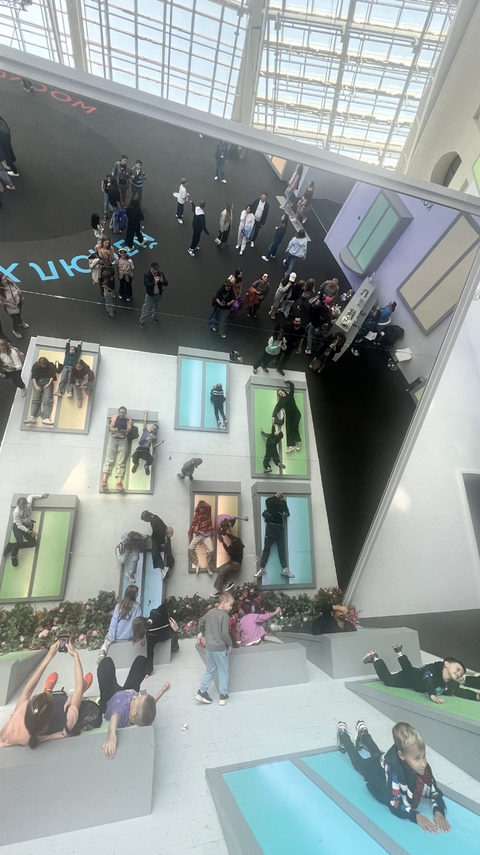 На входе красивые инсталляции и зеркальный скалодром. Ложишься на спину и отражаешься в настенном зеркале. Далее мастер классы для детей по росписи шоперов и декорации брелоков. Проходим через «Нейронный лес» и попадаем в пространство «Эмоциональный интеллект». Огромная очередь узнать уровень своего EQ. Это важный навык понимания и контроля эмоций. Стены украшены разными выражениями. Медицинские манипуляции: взять кровь из вены и сделать укол в ягодицы. Студенты медицинских колледжей пошагово объясняют процесс выполнения процедур. Оказание первой помощи На тренажёрах делаем искусственное дыхание. Эффективность наших действий отображается на экране компьютера. Ещё можно проиграть ситуацию, когда человек подавился. С помощью приёма Геймлиха спасаем пострадавшего. Отличная возможность освежить знания или научиться спасать жизнь человека. Световое и музыкальное шоу Потолок играет разноцветными огоньками в такт музыки. Статуи в центре зала подсвечиваются, а цветы распускаются. Выглядит