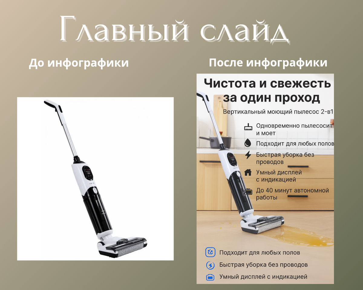Если вы ищете решение для быстрой и эффективной уборки, то вертикальный моющий пылесос 2-в-1 — именно то, что вам нужно. Этот уникальный прибор одновременно пылесосит и моет, обеспечивая идеальную чистоту за один проход. Преимущества: Не тратьте время на сложные устройства — выберите вертикальный моющий пылесос 2-в-1 и наслаждайтесь идеальной чистотой!