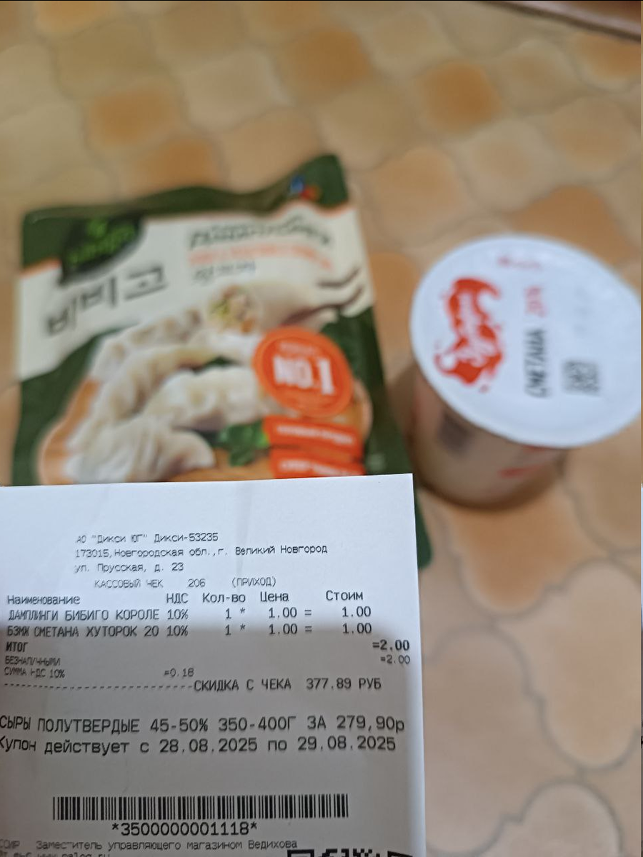 Покупка в Дикси на 2 рубля, на Ozon на 5 рублей и в Самокате на 19 рублей. Для кого-то звучит, как обман, но мои читатели не удивляются таким ценам, потому что сами делают такие покупки. Дикси просто так некоторым начислил по 300 экспресс-баллов, мне пришли баллы на один аккаунт из трёх. И хотя в условиях было написано, что баллы списываются только на доставку от 500 рублей, на самом деле баллы удалось списать и просто на кассе в магазине. И что самое лучшее – баллами получилось списать 99% цены. Я взяла пельмени со сметаной за 2 рубля. Возможно, это было упущение программистов, ведь по правилам списать баллы можно только в доставке. Поэтому я поторопилась потратить баллы, пока не Дикси не опомнился. Как я люблю такие цены по рублю. У меня на виртуальной карте с тестирования Buzzaar есть 3000 рублей и я их долго буду тратить. Делаю покупки за 2 рубля в Пятёрочке (списываю баллы, полученные за покупку детской еды), списываю баллы в Дикси, даже товары на Озон заказала за 5 рублей. Об эт