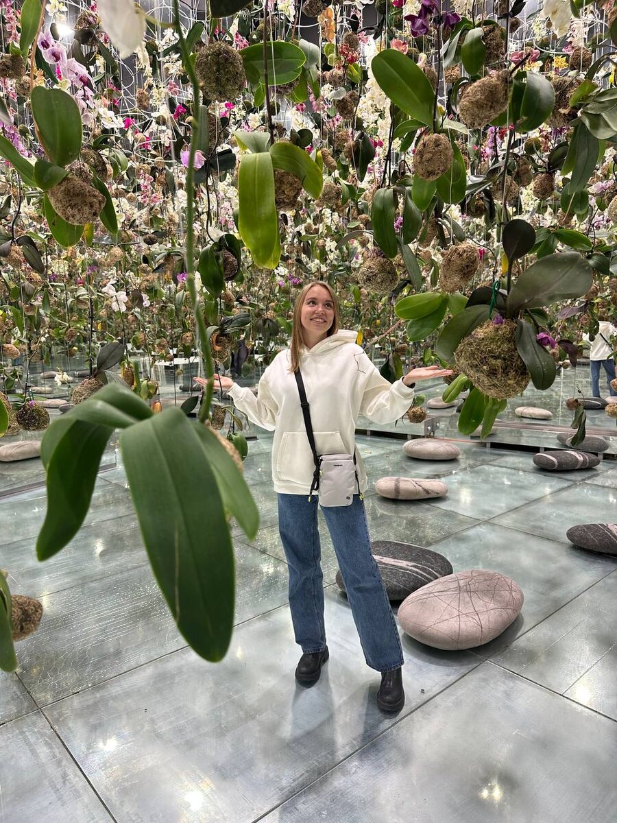 🌸Объединение ботаники и искусства🌸 🌸 Этот прием называется “кокедама” – это японская техника выращивания растений. 🌸 Звучит экзотично, но на деле всё довольно просто. Корни растения закрепляются в смеси земли и глины, затем всё это «одевают» в мох, который удерживает влагу и даёт корням дышать. 💧В таких композициях часто используется система орошения сверху – тонкий туман или капельный полив, чтобы поддерживать влажность мха и корней растений, ведь без земли они быстрее пересыхают. Это позволяет создать эффект “парящих” растений. 🌸Смотрится очень необычно — словно небольшой зелёный планетарий подвешен у вас дома. В данном случае композиция усилена зеркальными стенами, что создает эффект бесконечного пространства с подвешенными орхидеями. Такие установки часто встречаются на выставках, в ботанических садах и арт-инсталляциях. #красивости