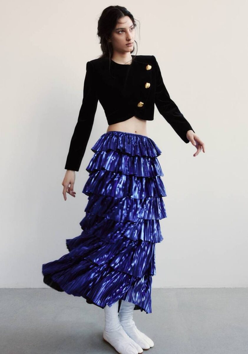 В новой коллекции Kalmanovich соединяет романтику и дерзость в одном дыхании. Образы балансируют на грани уязвимости и силы: воздушные кружева и прозрачные силуэты рядом с графичными жакетами и объемными костюмами. В основе — эстетика 70-х, иконы поп-культуры и символы той эпохи. Kalmanovich остаётся верен своей эстетике — сочетанию чувственности и силы, романтики и решимости. Цветовая гамма — от спокойных нюдовых и шоколадных до глубокого фиолетового, насыщенного алого и электрического синего. #ФокусМода_РоссийскиеБренды