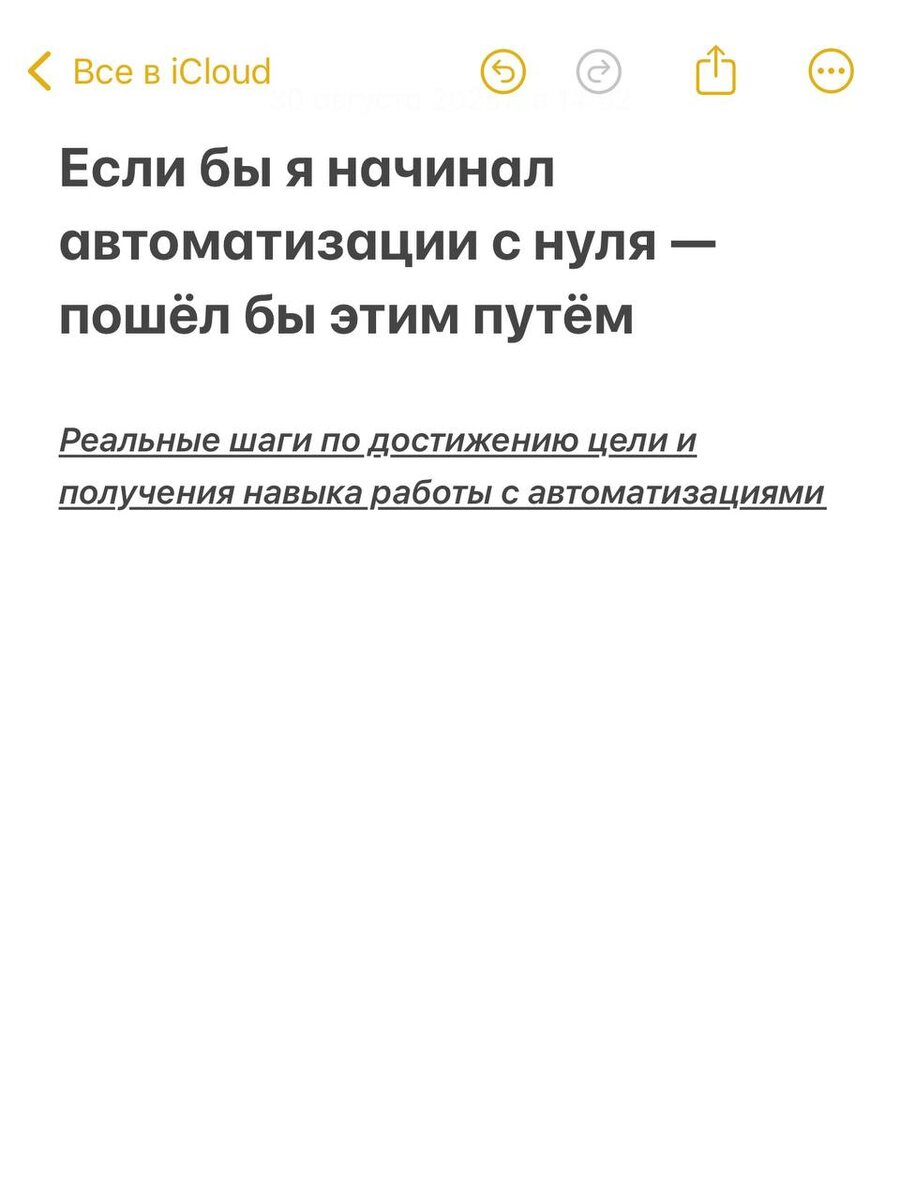 Если бы я начал изучать автоматизации с нуля, каким путем я бы пошел? Реальные шаги по достижению цели и получения навыка работы с автоматизациями в карусели 👆🏻 ➡️ Уроки закрытого клуба (можно приобрести любой урок отдельно) ➡️ Вступить в закрытый клуб по работе с автоматизациями ➡️ Полная программа обучения в закрытом клубе ➡️ Реферальная программа для участников клуба