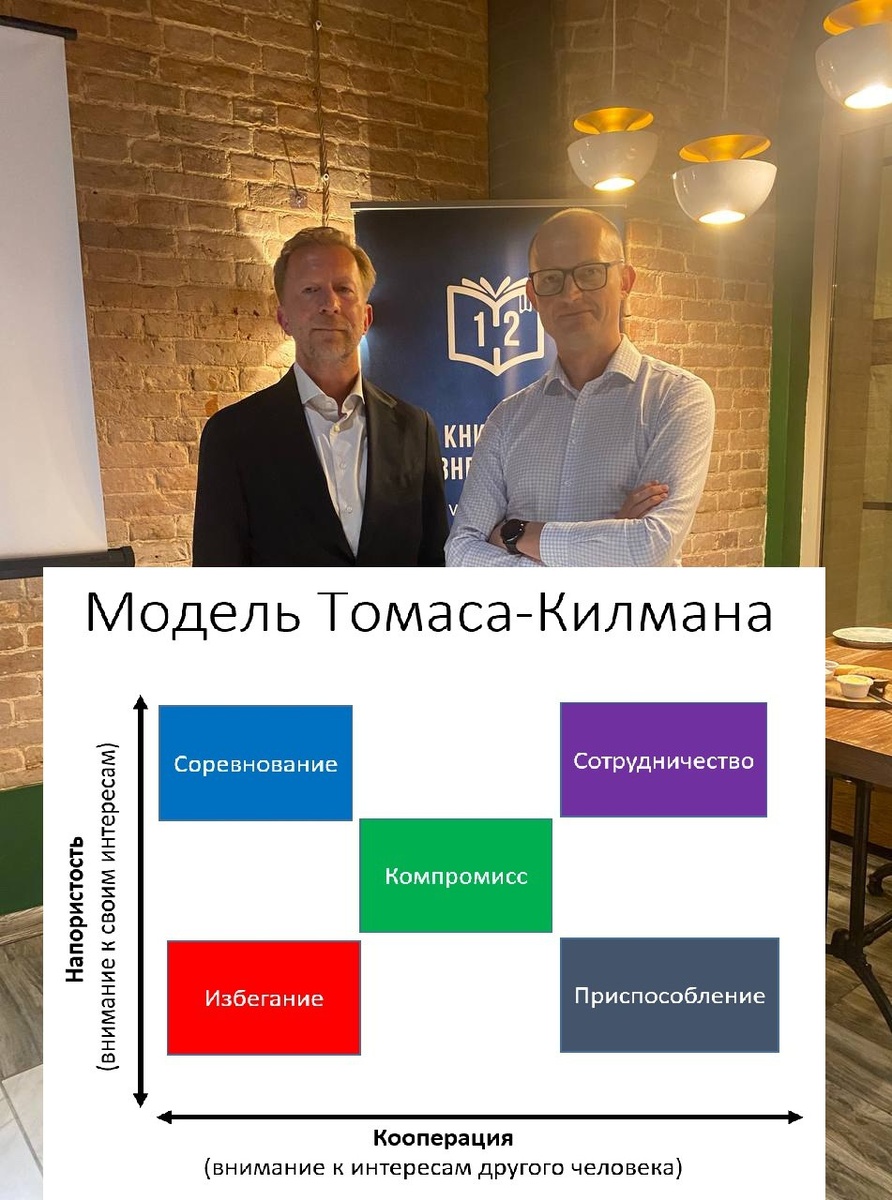 📌 А компромисс не лучшая идея. Недавно на встрече в Книжном клубе выступал Дмитрий Лебедев, предприниматель, менеджер, писатель. Из всей презентации больше всего запомнилась модель Томаса–Килмана, которая определяет наш тип сотрудничества с людьми. 🔹 Увы, мы, да и я, сталкивались с негативными моделями поведения: • Приспособление — когда мы не учитываем интересы себя; • Соревнование — когда игнорируем другого. 🔹 Компромисс, кстати, согласно этой модели — лишь средненький вариант. 🔹 А лучше Сотрудничества ничего нет. Наверное, Сотрудничество ещё можно назвать моделью Win-Win. 💡 Вывод: даже если просто обратить внимание на модель и «наложить» её на наши самые сложные или важные отношения, можно сделать много выводов. И в идеале — всегда стремиться к сотрудничеству.