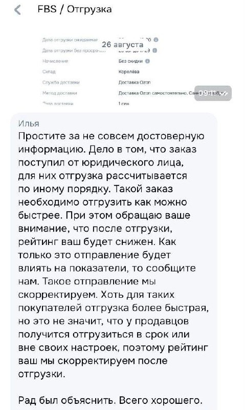 Недоработки в ЛК Ozon: селлеры должны сами «ловить» заказы от юрлиц Один из продавцов поделился: система отгрузки на Ozon работает так криво, что селлеру приходится самому вычислять заказы от юрлиц, а потом ещё писать в поддержку, чтобы не упал рейтинг. Цитата: «Офигеть озон придумал систему, т.е. я еще должен палить заказы от юр.лиц а потом еще написывать им в тп, потому что они криво сделали свою систему. Так если у вас не работает нормально может отключите? У вас даже тп не знает нормально как работает отгрузка без просрочки». Получается, что ответственность за недоработки ЛК в Ozon перекладывают на селлеров. Marketplace_biz - отдай свой буст каналу