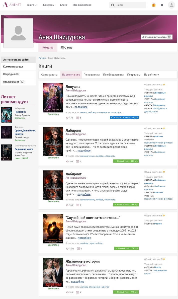 Также не очень проработан роман «Ловушка», но он еще и не дописан, поэтому его пока не беру во внимание.
