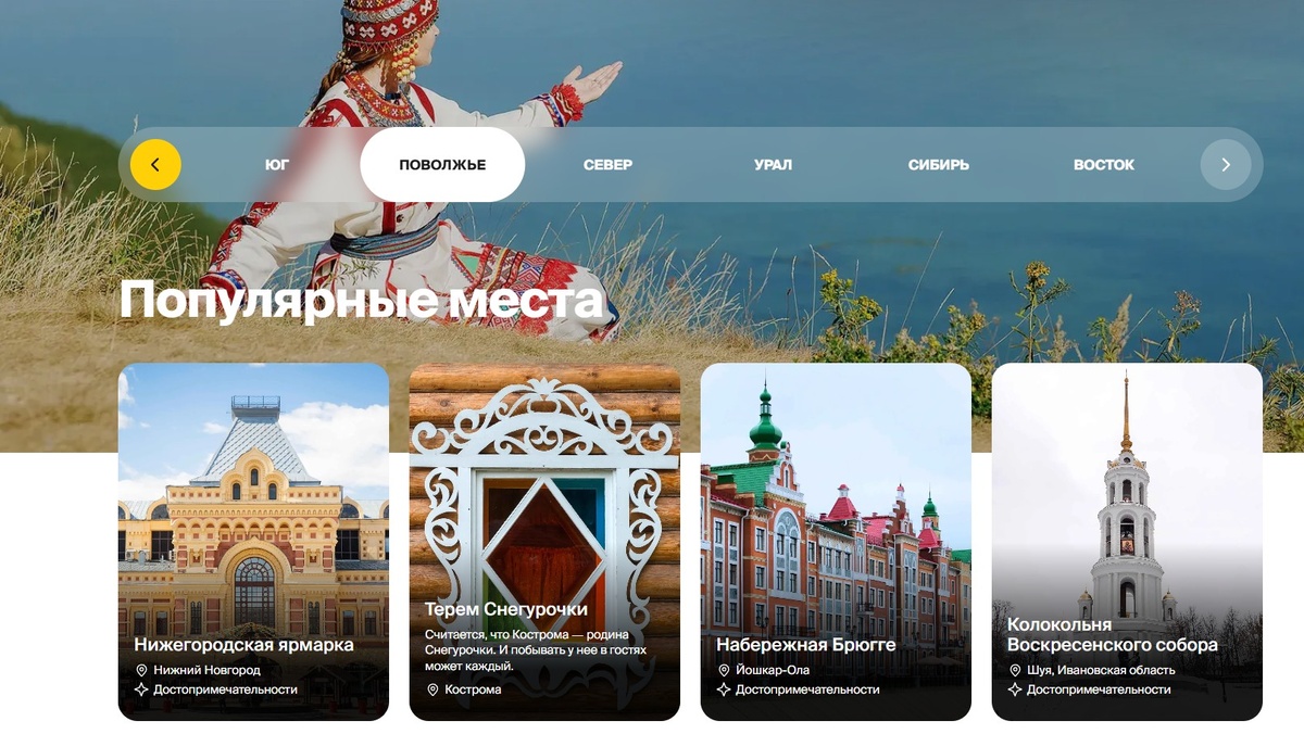 Если вы еще не решили, куда хотели бы отправиться, на национальном туристическом портале путешествуем.рф выберите вверху одно из направлений: Центр, Юг, Кавказ, Поволжье и т.д. Возможно, здесь вы найдете интересную информацию о достопримечательностях.
