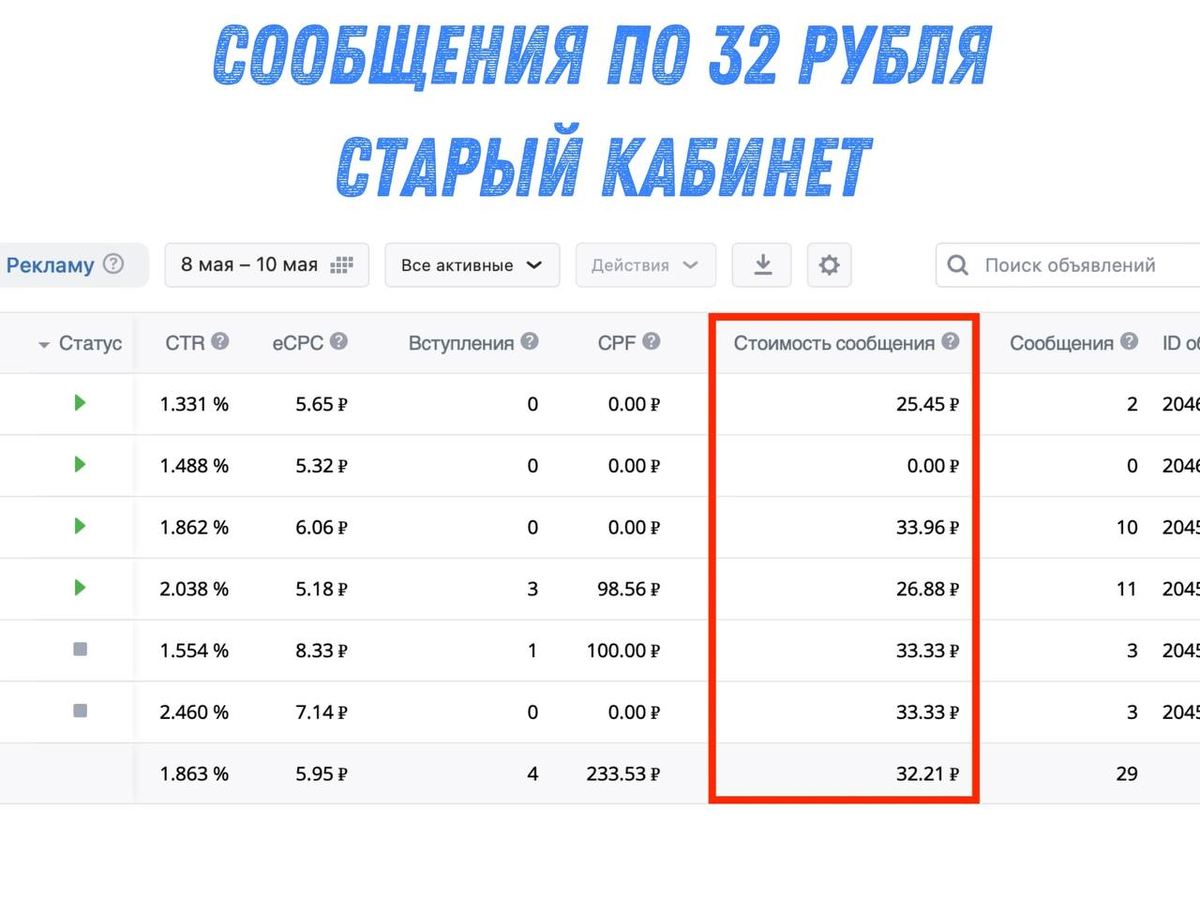 Запускаешь три объявления - два крутятся нормально, а одно откручивает весь бюджет за 10 минут. Тут есть выход, переходишь на ручное управление ставкой и регулируешь открут вручную.