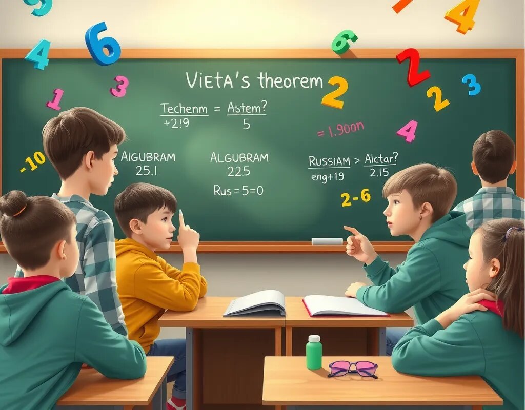 ✔ Наш Telegram-канал с новостями, подписывайтесь: 👉 Учись Легко Теорема Виета связывает коэффициенты квадратного уравнения с его корнями. Звучит сложно? На практике это просто: если уравнение x² + px + q = 0, то x₁ + x₂ = -p, а x₁ * x₂ = q. Представьте, что у вас есть набор LEGO: каждая деталь — это корень, а теорема Виета показывает, как их соединить, чтобы получить правильную «модель» — решение задачи. Вместо того чтобы сразу прыгать в решение, попробуйте нарисовать схему: Так вы «увидите» уравнение глазами и мозг быстрее схватывает идею. Не обязательно искать корни с