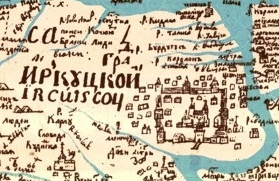 Ряд исследователей относит возникновение Иркутска к 1620 году, другие считают, что в 1650-е годы на острове Дьячем существовало постоянное зимовье русских[40]. Основанию Иркутского острога предшествовал выход русских к Байкалу в 1643 году. Это был один из многочисленных острогов в Восточной Сибири, поставленных для сбора ясака. Первым приказчиком нового острога был назначен казачий десятник Василий Ездаков. К концу 1660-х годов строения острога сгнили, оборонительное сооружение было выстроено заново. Вокруг него вырыли ров, за стенами возник посад. В 1672 году построена первая деревянная церковь — Спасская. В 1682 году острог становится центром Иркутского воеводства, объединяющего все остроги Прибайкалья. Резиденцией воеводы становится государев двор. В 1686 году Иркутску присвоен статус города[41].