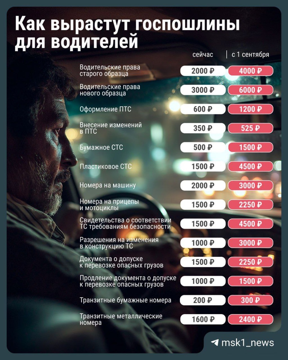 Если не успели поменять права или купить машину, с 1 сентября оформить документы будет дороже. Вот тут полезная инструкция от подписчицы, как в Мытищах заменить права по истечению срока годности.