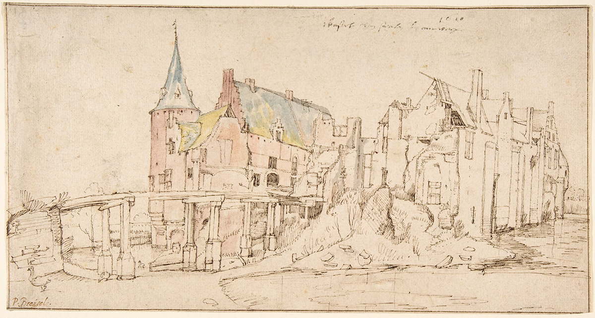 Изящными, но уверенными линиями коричневых чернил с лёгкими акварельными оттенками Ян Брейгель Старший (1568–1625) довольно величественно изобразил руины замка Мерксем близ Антверпена. По всей вероятности, работа была выполнена с натуры. Идно, что замок, которого больше нет, недавно подвергся нападению, поскольку Нидерланды всё ещё находились в состоянии войны с Испанией. В этот период истории в работах различных нидерландских художников, таких как Рулант Саверей (1576–1639), Хендрик Гольциус (1558–1617) и Якоб Матам (1571–1631), всё чаще встречаются изображения различных руин известных домов или замков.