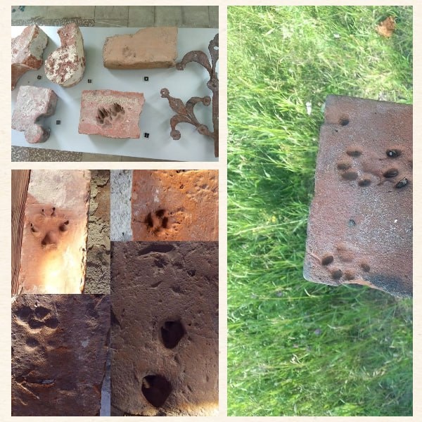 Что со следами: кирпичи Такие можно встретить в музеях региона. Во время изготовления и просушки кирпичей животные часто наступали на них. Тем самым оставляли свой автограф во времени. Вот такие вот послания из прошлого.