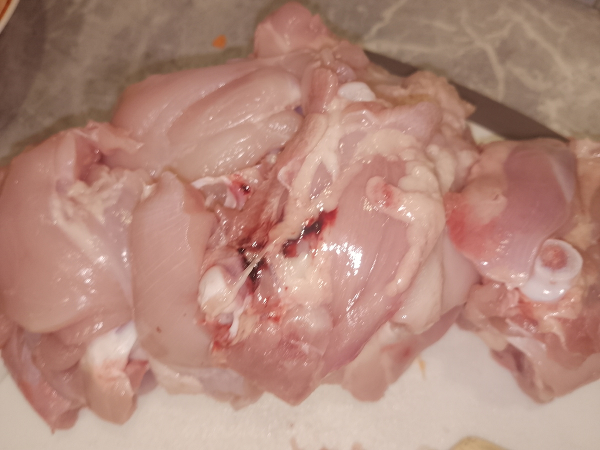 ✅мясо-- бедро курицы, режем на кусочки(снимаем кожу)