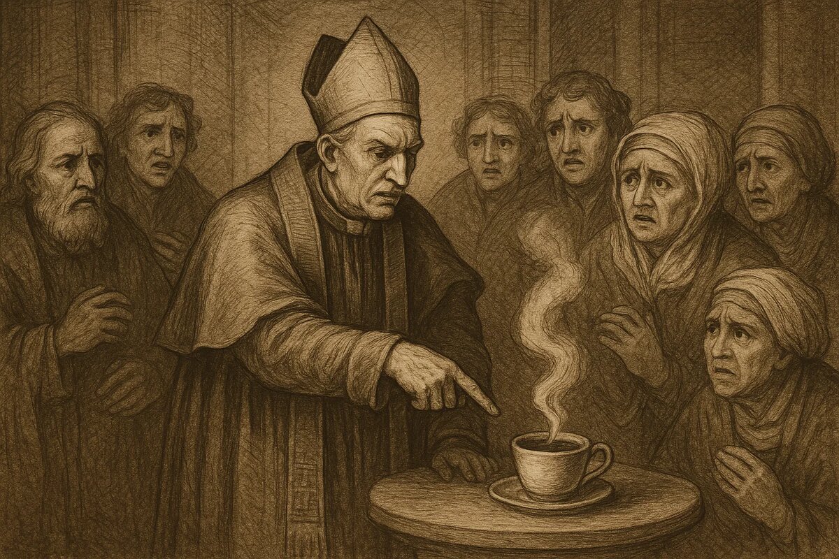 Сегодня трудно представить утро без чашки кофе. Этот напиток бодрит, объединяет людей и давно стал частью нашей повседневности. Но всего несколько веков назад в Европе кофе считали опасным. Его называли «дьявольским напитком», запрещали и даже пытались изгнать с улиц. Для одних он был лекарством, для других — ядом, для третьих — символом «искушения Востока». Так что произошло вот что: привычный нам кофе когда-то пугал и священников, и королей. Родина кофе — Эфиопия. Оттуда зёрна попали в Йемен, а затем — в Османскую империю. К XV веку напиток уже активно пили в Турции и Персии. В Европу кофе завезли венецианские купцы. В начале XVII века он появился в Италии, а оттуда быстро распространился в другие страны. Но вместе с ароматом пришли и подозрения. Причин было несколько: Так у напитка появилось прозвище «дьявольский». История кофе полна запретов: Но случился поворот. Папа Климент VIII попробовал кофе и заявил: «Напиток слишком вкусный, чтобы оставлять его одному дьяволу». После этого к
