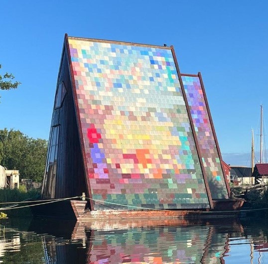 ⛪Плавучий кафедральный собор - новая задумка религиозных шведов на Западном побережье. Все лето он заходит в порты разных городов, чтобы привлечь внимание к экологии моря и бездуховности. Кафедральный собор надежды - таково официальное название. Его сверкающая разноцветная крыша - из пластика от рыбных ящиков. Форма напоминает деревянные ставкирке. Он был создан художником Сольвейг Эгеланд при поддержке Норвежской церкви в Фредрикстаде. 🛶