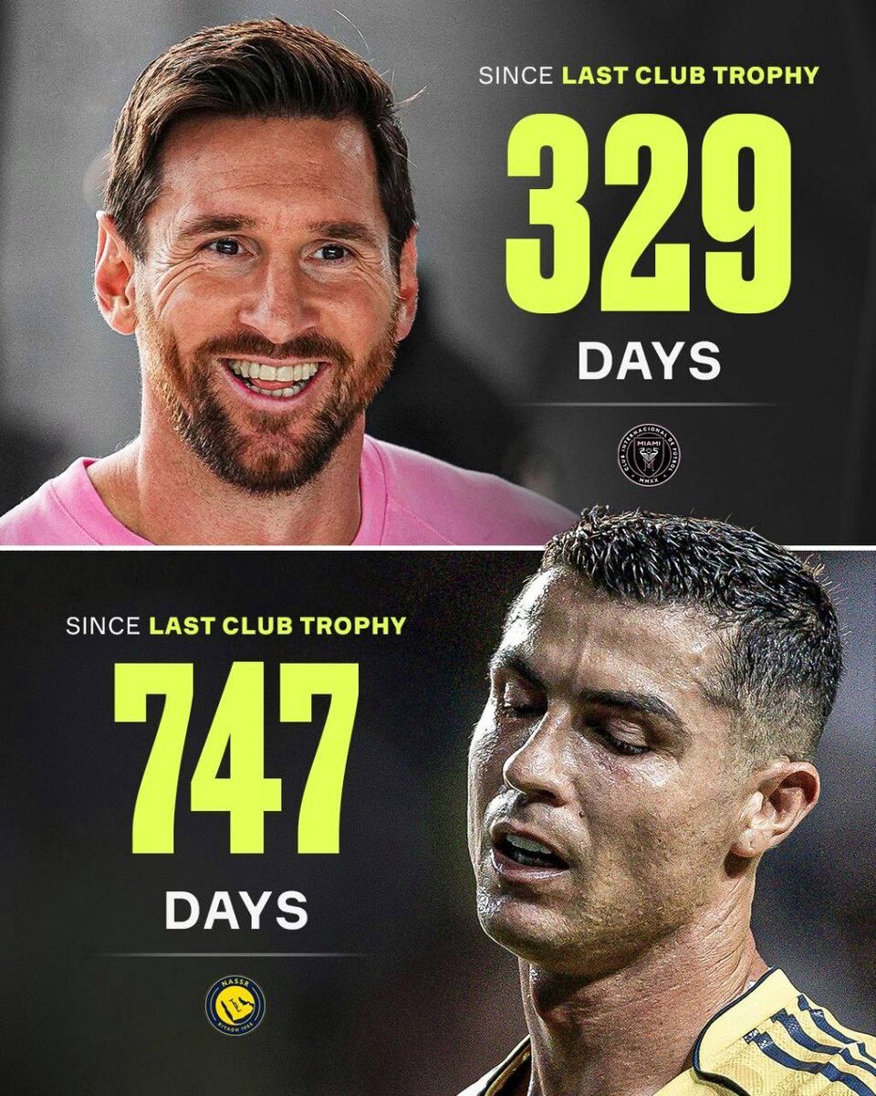 👀 Сколько дней Месси и Роналду не выигрывали клубных трофеев