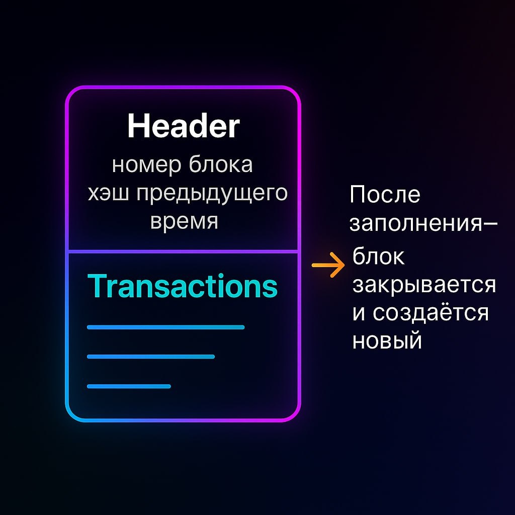 📦 Что внутри блока и как он работает? Блок в блокчейне — это как страница в книге: - Header (заголовок): номер блока, ссылка на предыдущий (хэш), время создания - Transactions (тело): список всех транзакций Как работает цикл блока: 1. Транзакции записываются в блок 2. Когда блок заполнен, он закрывается и больше не меняется 3. Создаётся новый блок, связанный с предыдущим 🔗 Именно так формируется цепочка блоков (blockchain). Для QA это важно: тестируется не только содержимое блока, но и процесс его закрытия и добавления в цепь. #QAвБлокчейн #Web3QA #BlockchainTesting --- 🌐 Сайт | 💼 LinkedIn | 📘 Курс по Postman