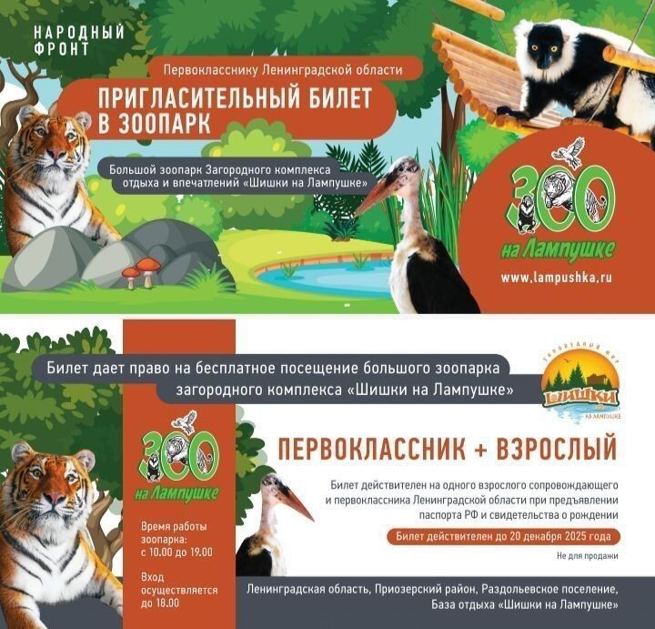 Каждый первоклассник Ленобласти получит к началу учебного года бесплатные приглашения в зоопарк. Об этом сообщает пресс-служба администрации региона. Ленинградское отделение «Народного фронта» предложило дополнить традиционный подарок первокласснику билетами в зоопарк, новыми впечатлениями и новыми семейными традициями. Каждый ребёнок в сопровождении взрослого сможет бесплатно посетить зоопарк «Шишки на Лампушке» в Приозерском районе. Подарочные билеты действительны до конца 2025 года. Ранее сообщалось, что в Петербурге не будут вводить для школьников оценки за поведение.