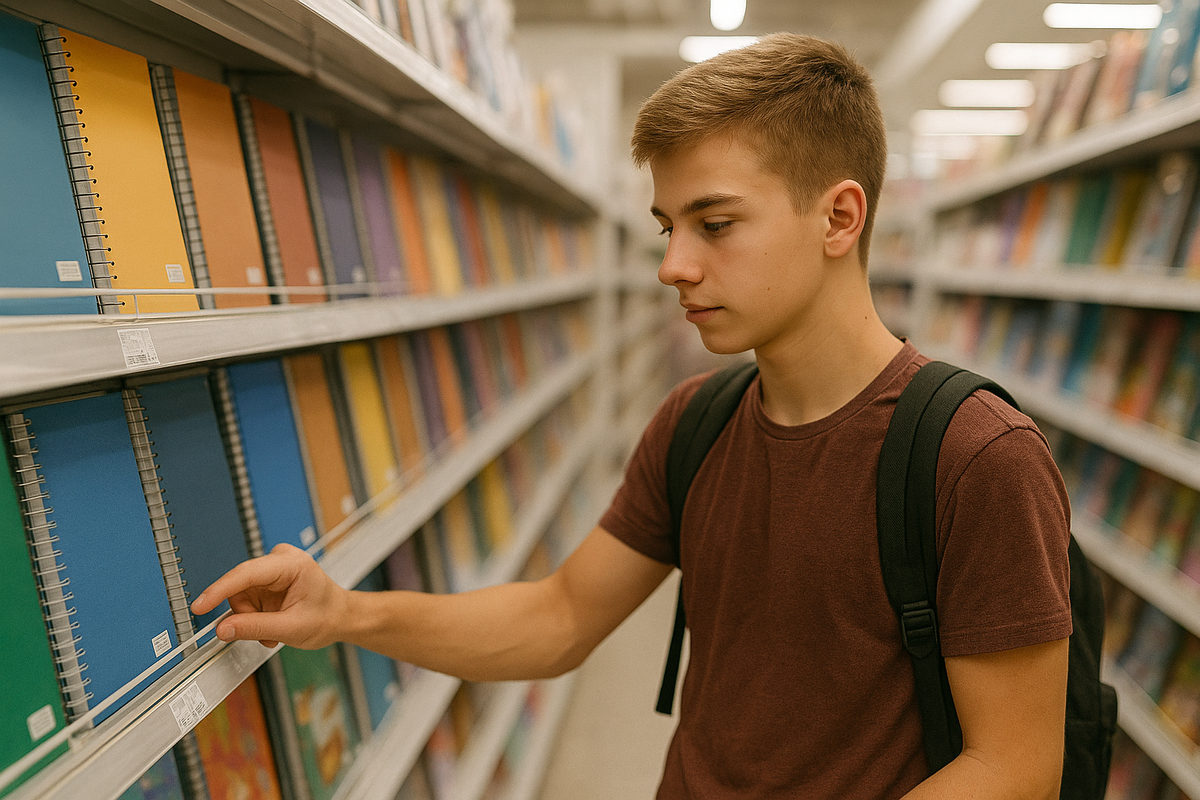 Магазин впереди сиял яркой вывеской «Канцелярия», а внутри уже толпились такие же страдальцы, как он: подростки и родители с огромными корзинами.