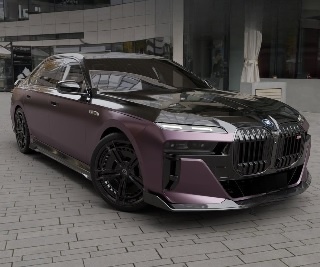 Тюнинговую мастерскую посетила очередная BMW 7 серии последнего поколения. Представленный экземпляр взяли и оснастили некоторыми примочками и доработками, предназначенными для этой модели. Смелый внешний вид определяется цветами кузова. Тюнер использовал фиолетовый шелковистый металлик для его нижней части и придал верхним частям глянцево-черный оттенок. Такие переходы, по скромному, создают очень привлекательный дизайн. Благодаря своему внушительному стилю, последний флагманский седан мюнхенского автопроизводителя особенно хорошо смотрится в двухцветной отделке, или оклейке пленкой, так что это, безусловно, победа. Если присмотритесь к этому BMW 7 серии внимательнее, увидите, что он также оснащен некоторыми дополнительными компонентами. Среди них массивный спойлер на «подбородке», который смотрелся бы гораздо лучше без боковых накладок. В задней части автомобиля установлены боковые юбки. Задний диффузор также новый. Он оснащен парой дополнительных фонарей по центру и вырезами для вых