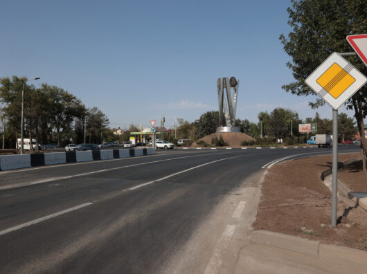 Врио губернатора Ростовской области Юрий Слюсарь проверил выполнение работ по реконструкции западного въезда в Ростове на кольцевом пересечении улиц Таганрогской и Малиновского. Об этом сообщает пресс-служба главы региона. В ходе осмотра глава города Александр Скрябин доложил о выполненных работах: изменении конфигурации радиуса поворота, обустройстве разгонного кармана для безопасного правого поворота, обновлении дорожного покрытия и разметки, строительстве тротуаров, «умного пешеходного перехода» и двух остановочных комплексов. Особое внимание было уделено новой 20-метровой стеле, посвященной доблести российского народа. Монумент, созданный скульптором Сергеем Олешней и архитектором Юрием Дворниковым, представляет собой три соединенные буквы «V» с государственными наградами, символизирующими единство народа. Финансирование осуществлено за счет внебюджетных средств Фонда «Город». Юрий Слюсарь указал на необходимость проведения озеленения территории вокруг монумента, которое запланиров
