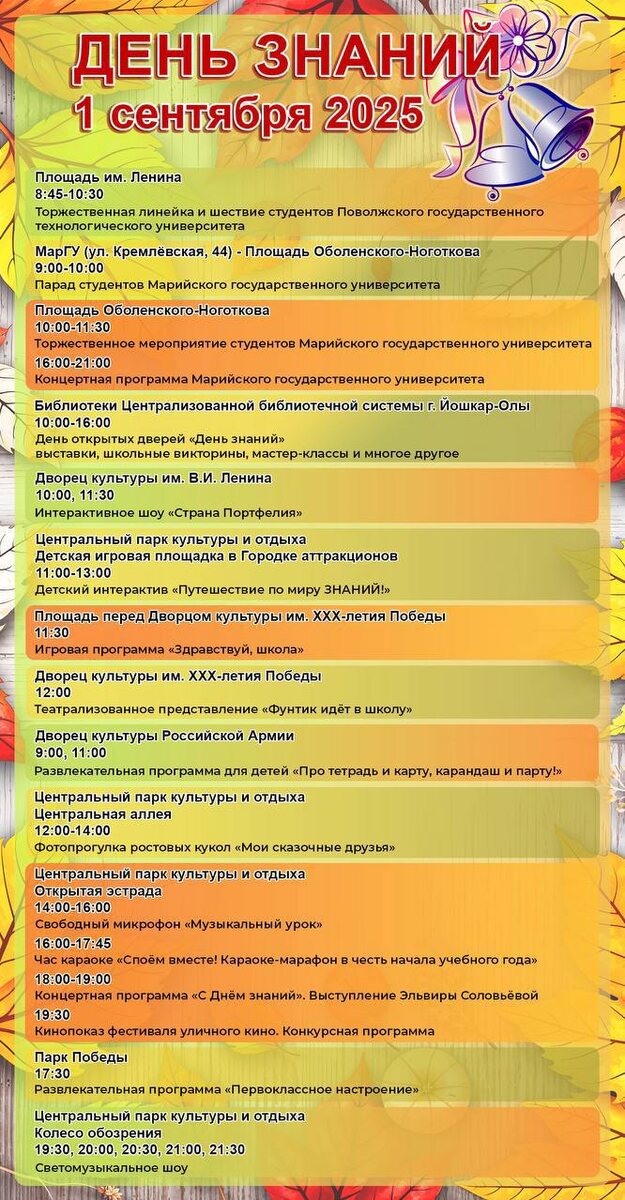 В мэрии Йошкар-Олы опубликовали афишу праздничных мероприятий ко Дню знаний