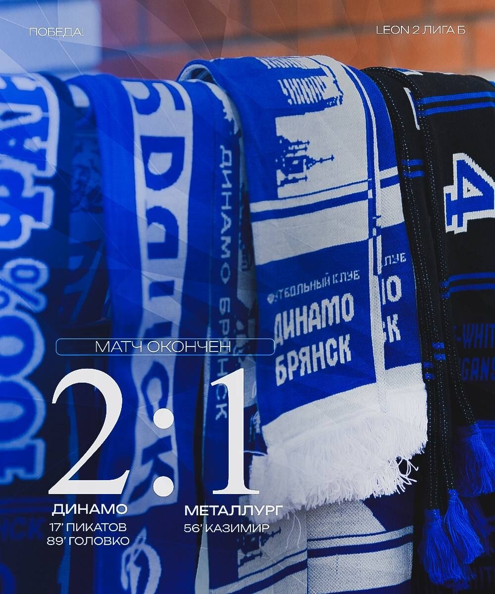 В рамках Второй лиги Дивизиона Б завершился матч между «Динамо» из Брянска и «Металлургом». Победу со счетом 2:1 одержали хозяева поля.