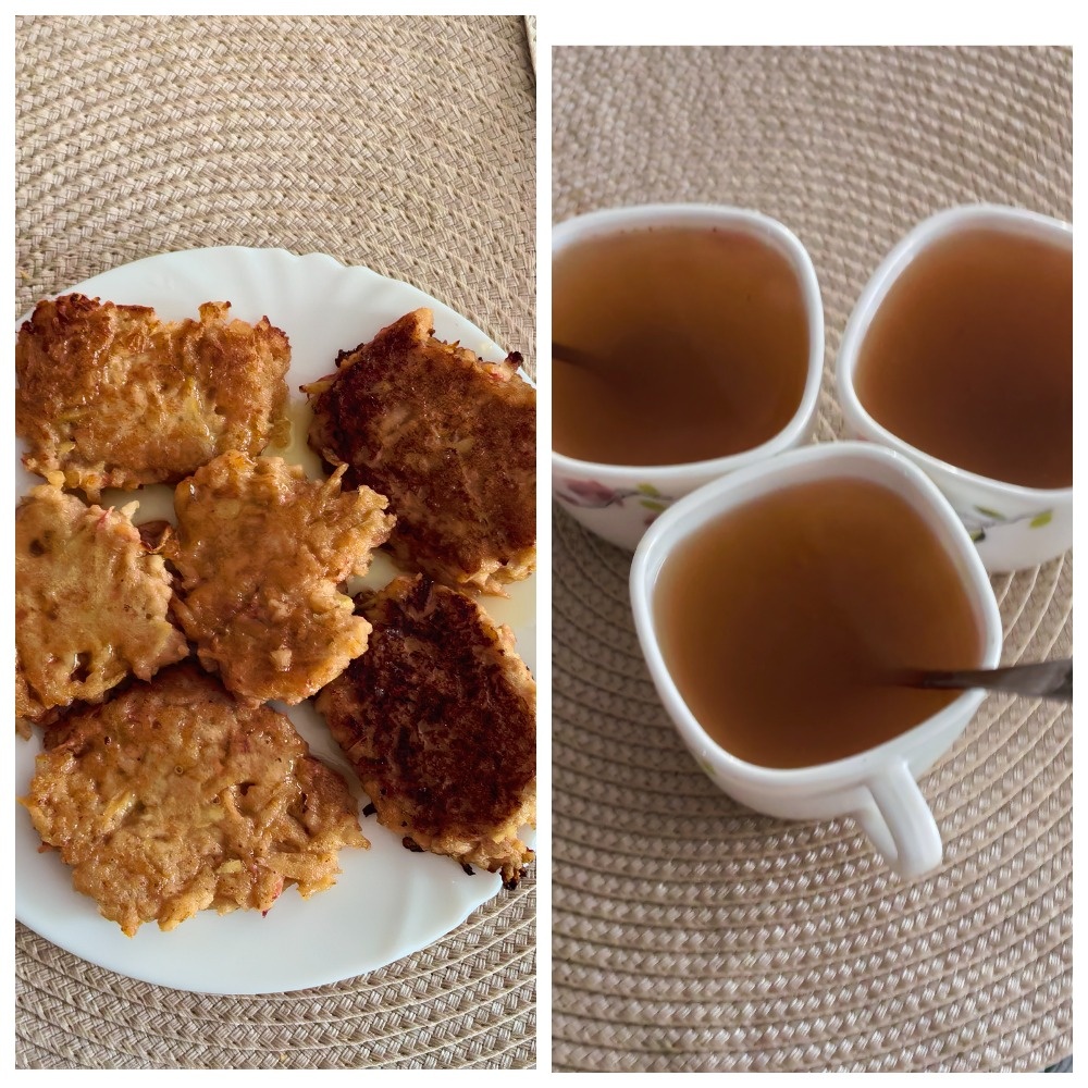 Оладьи яблочные с мёдом и компот яблочный с корицей и мёдом