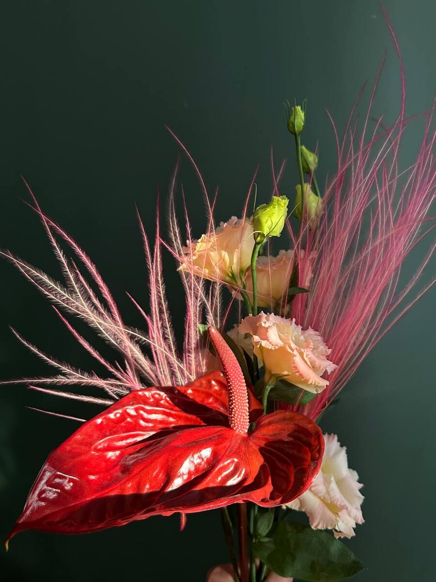 Как думаешь, получится ли подружить светлый лизиантус с тёмным антуриумом этим нежным крашеным ковылём